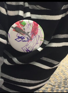 I presented a very important lesson about the Love Light in the Montessori class I recently taught. The lesson is about an invisible light we all have inside of us that shines so bright when we feel happy, loved, proud, and accomplished. This is our love light and we can feel when it's shining so bright. The kids loved the lesson and afterward I put my button making machine to work so everyone could make a button depicting what their own love light looks like. (Side note: my button machine was an awesome Christmas gift from my thoughtful husband! Thanks again, babe!) I showed them the example I made (the first one shown) and they came up with their own perfect love lights. Aren't they great?! I love how colorful they are :) The kids were only three years old !